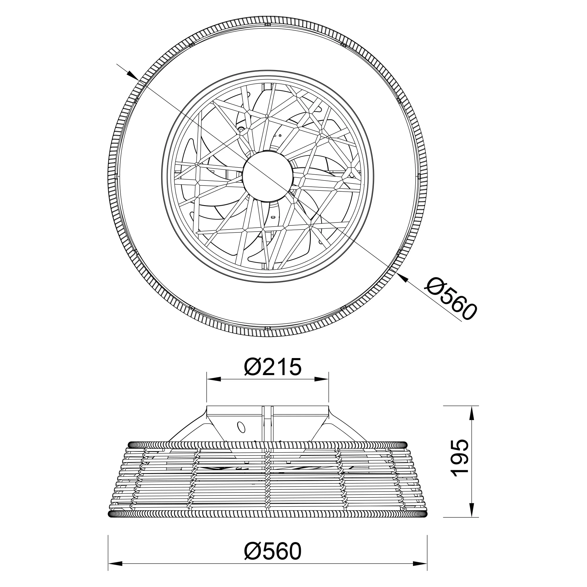 ротанга. Вентилятор мощностью 35 Вт и 25 Вт установлен за сеткой с