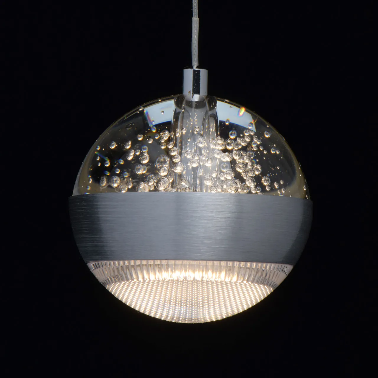Основание/ сплав алюминия/античное серебро. Плафон/ стекло, акрил/ прозрачный, пузырьки воздуха