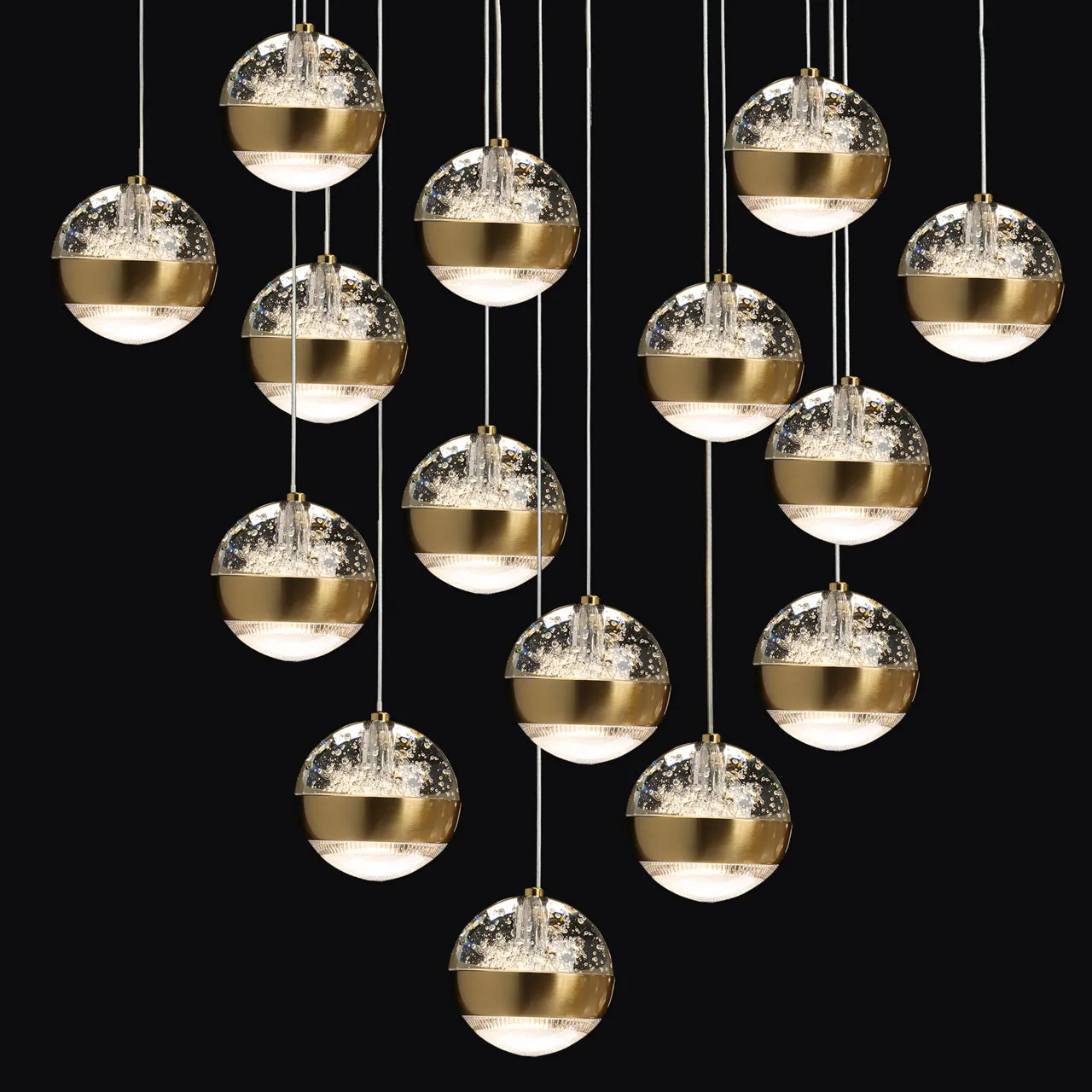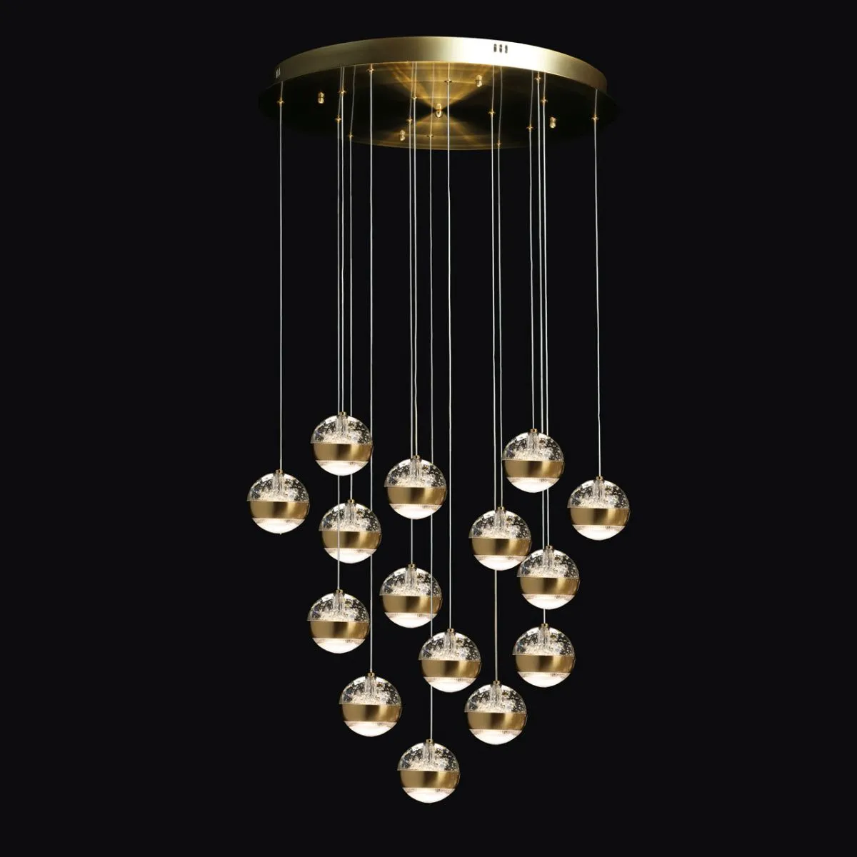 Основание/ сплав алюминия/ латунь Плафон/ стекло, акрил/ прозрачный, пузырьки воздуха